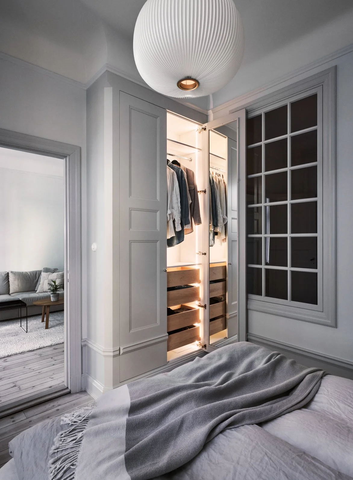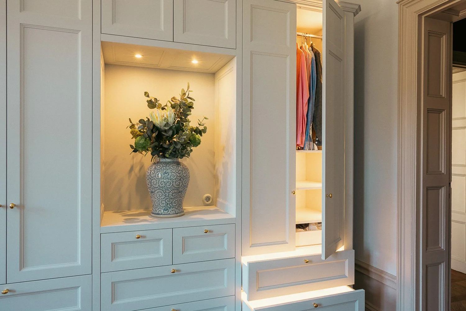 Skräddarsydd garderobslösning med klassiska detaljer och smart funktion